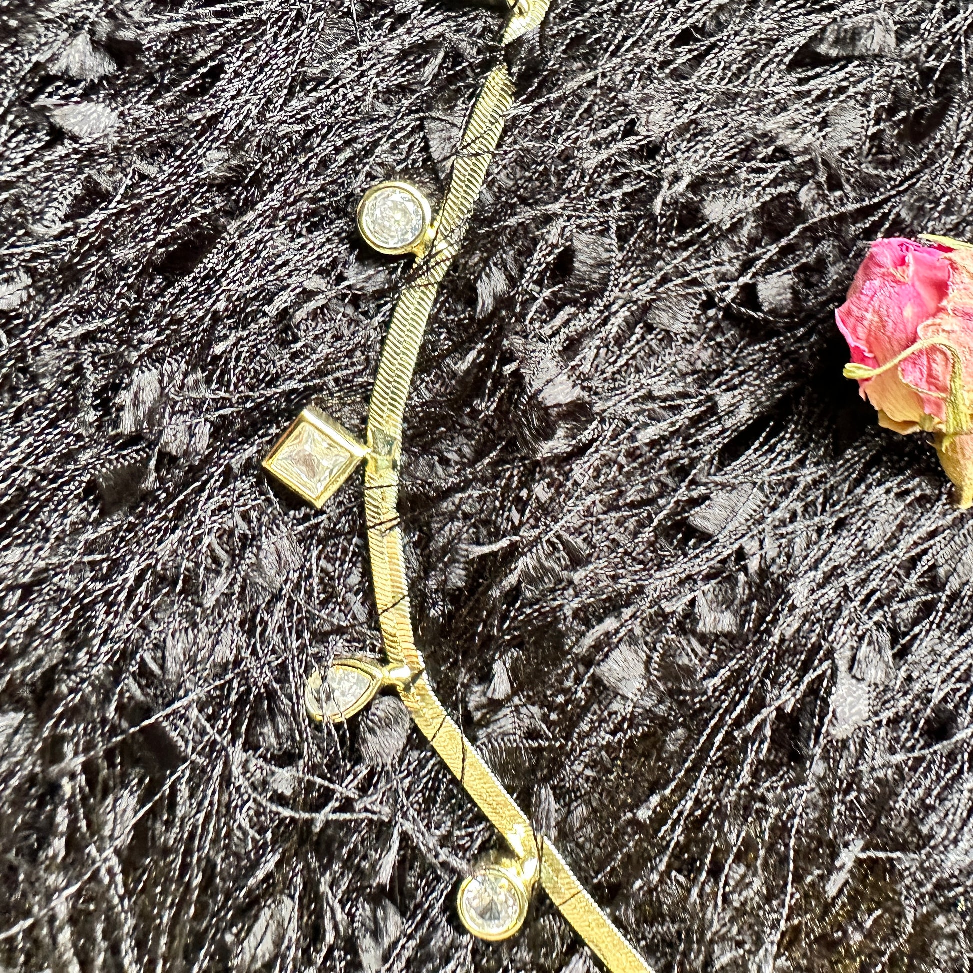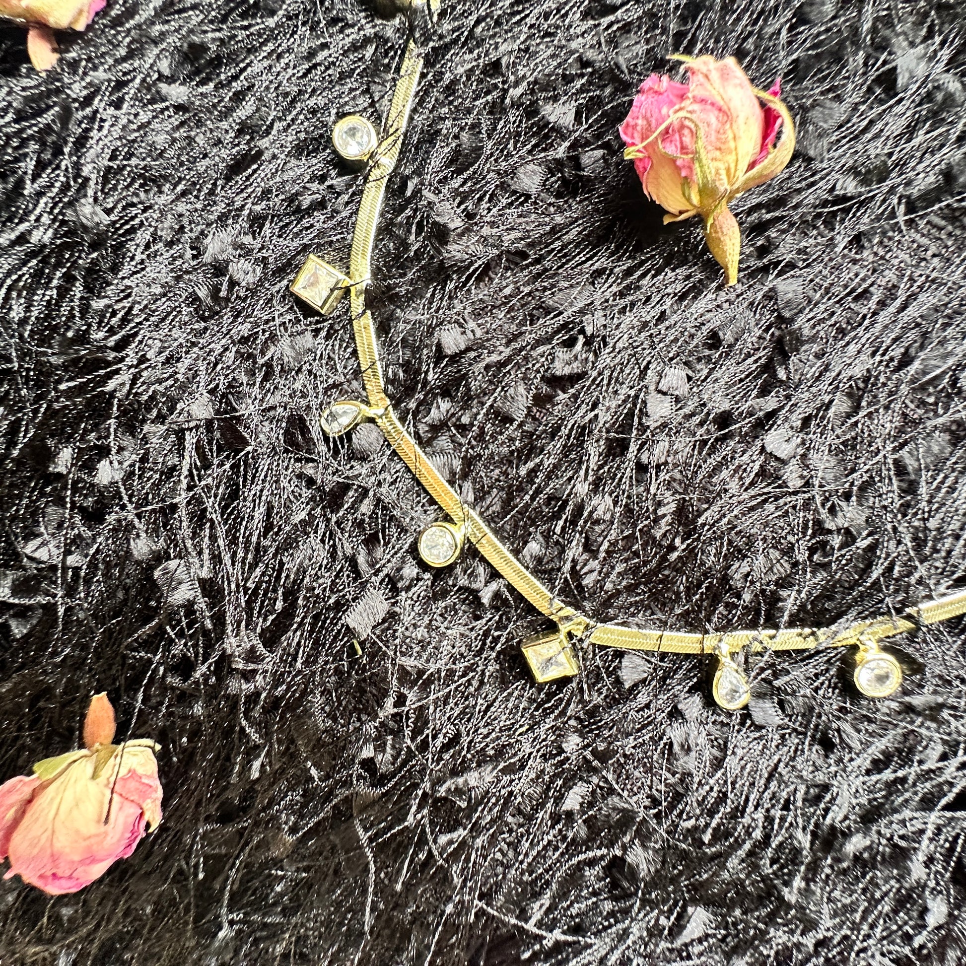 Dilkash means heart-captivating—not because it demands attention, but because it holds it. This herringbone necklace sits close to the collarbone, fluid and luminous, designed to move with your breath and your body. The sculptural shape charms catch light like small works of art, adding quiet luxury to even the simplest layers.